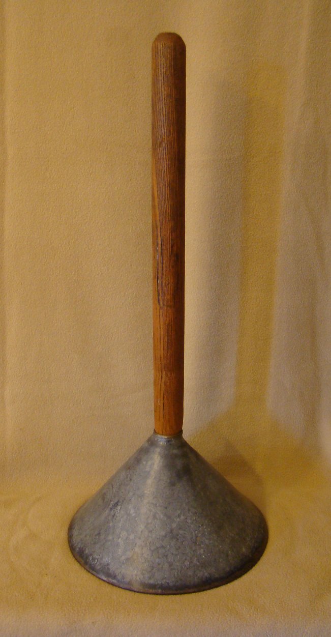 | Description: | Vacuum washing stomp, hole in handle to top for valve,tin | |