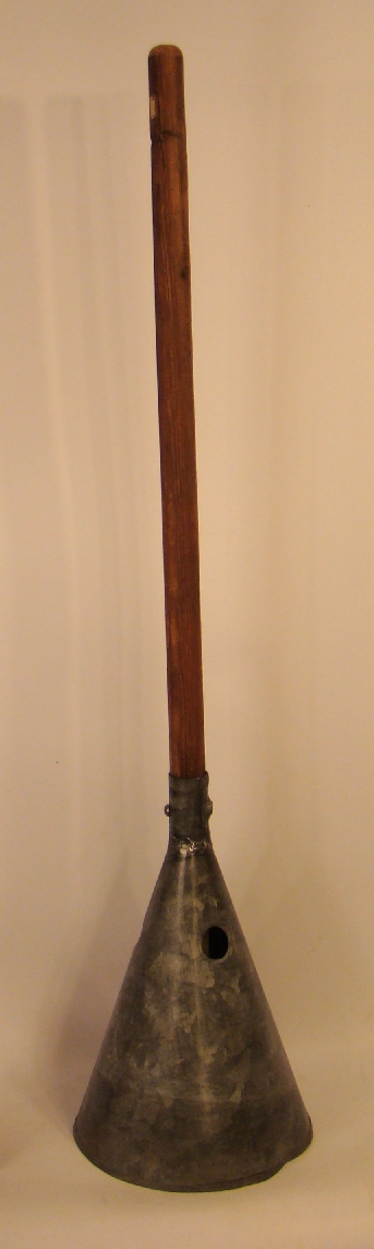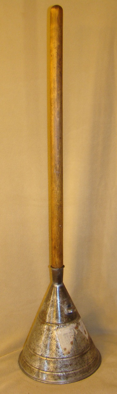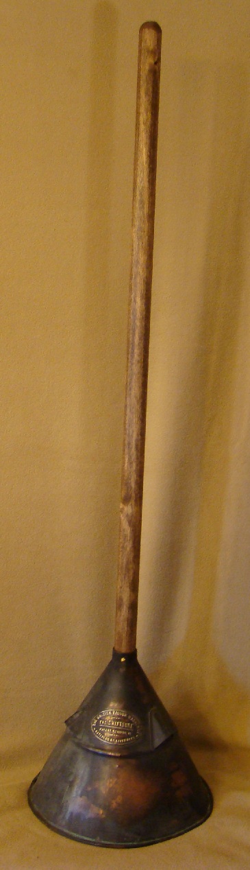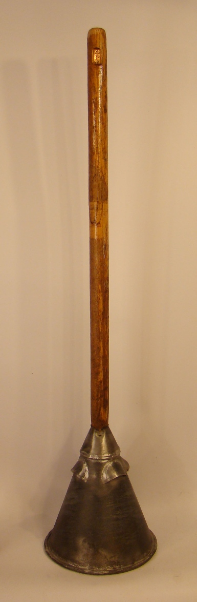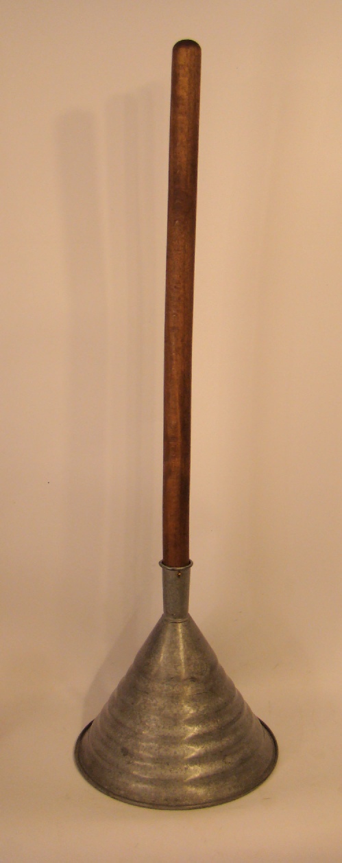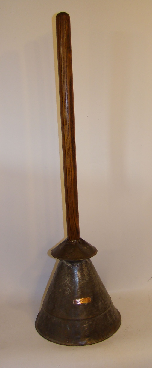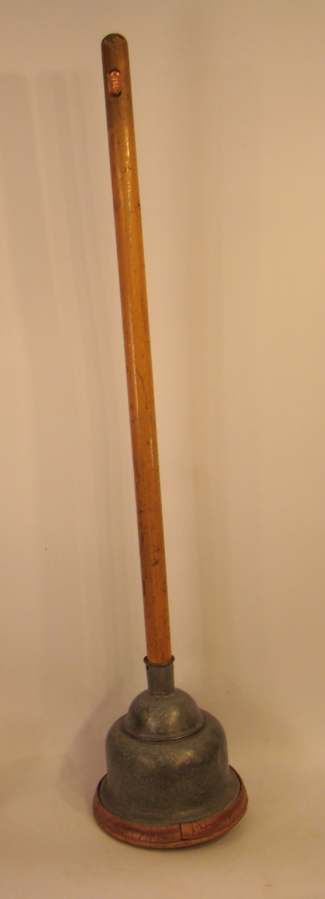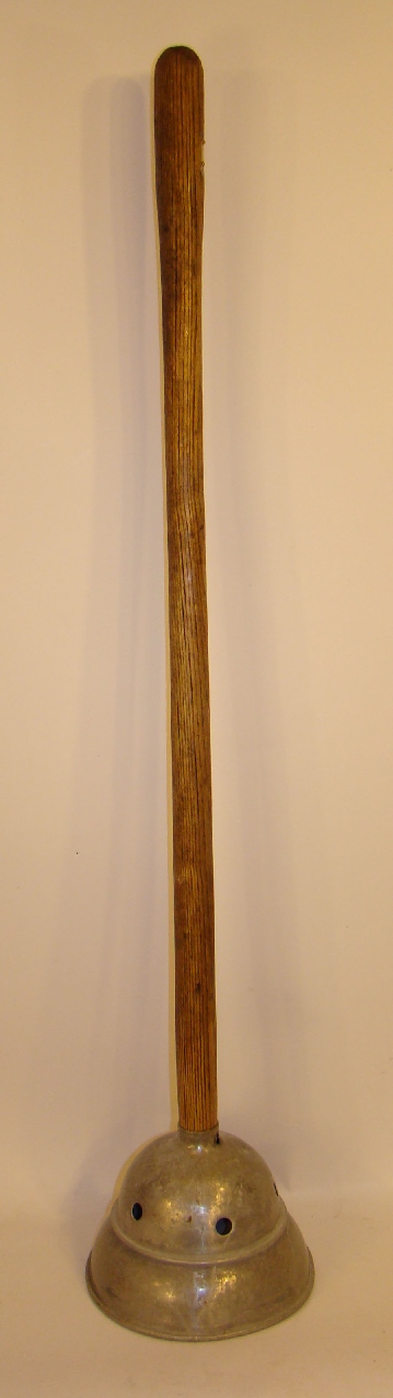 | Description: | Vacuum washing stomp, galvanized steel, has image of an anchor embossed on cone | |