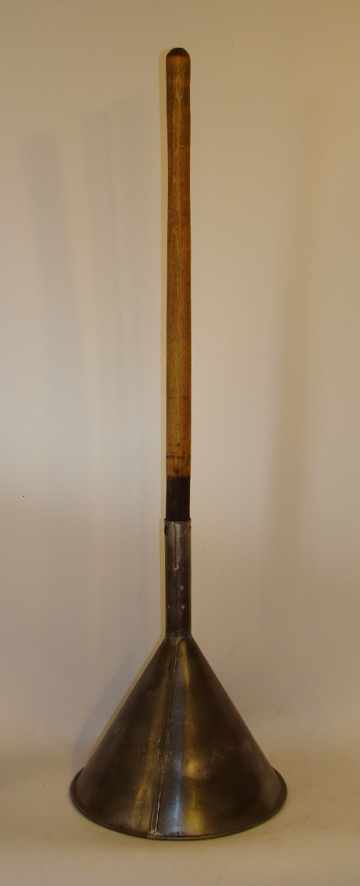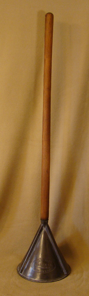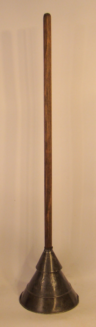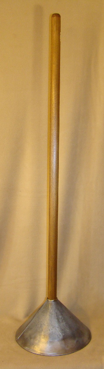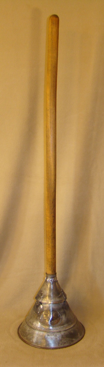 | Description: | Vacuum washing stomp, tin, has groove in handle to let air into cone | |