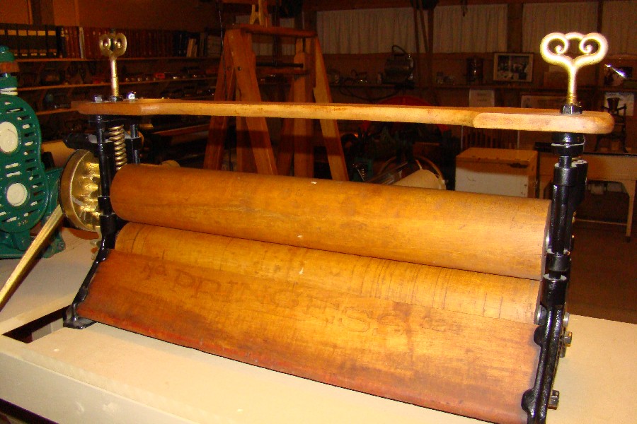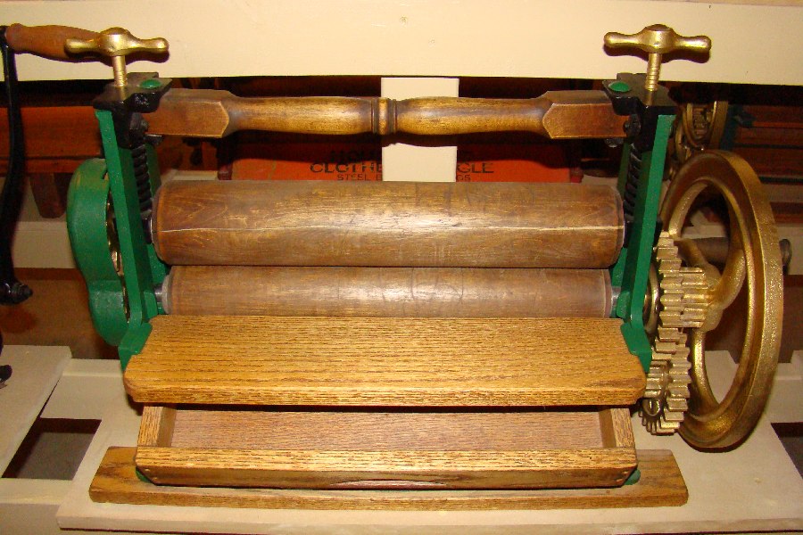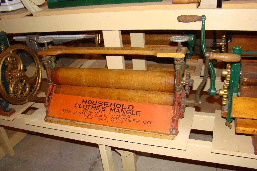 | Description: | Mangle, hand operated, folding handle | |