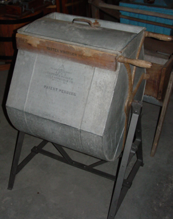 | Description: | Rocking tub, galvanized tub, hand operated |