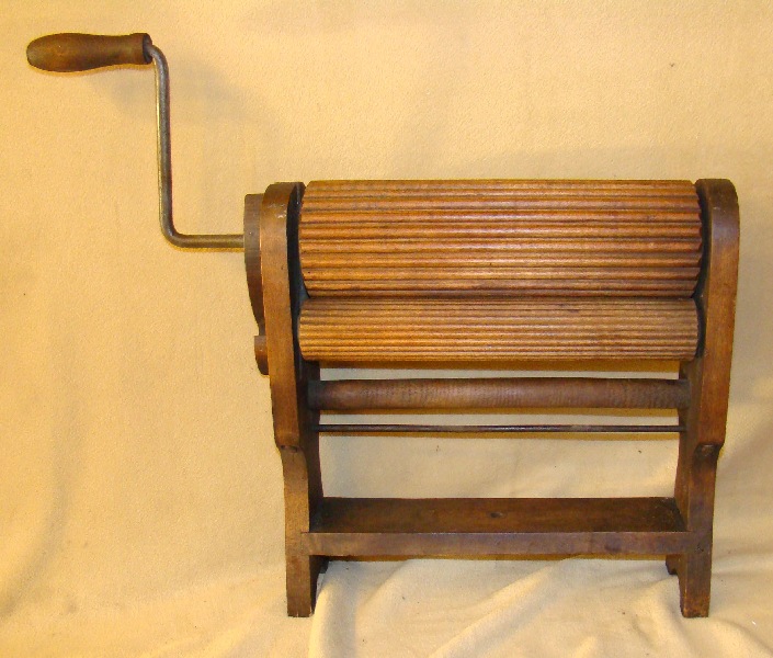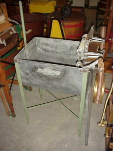 | Description: | Rotary squeezer, with two wooden tubs on stand | |