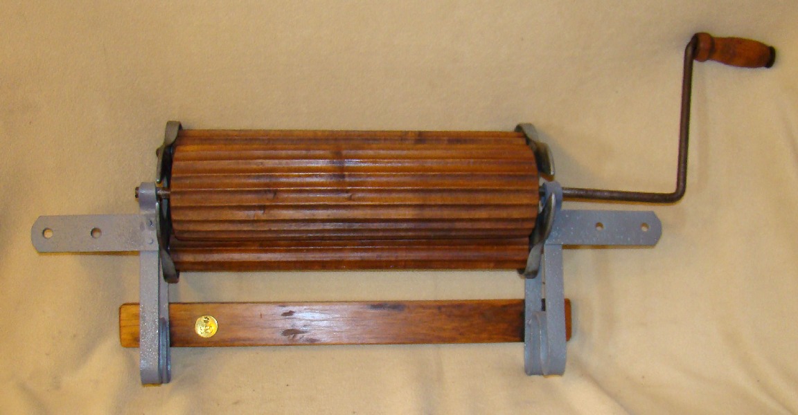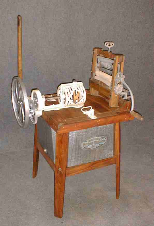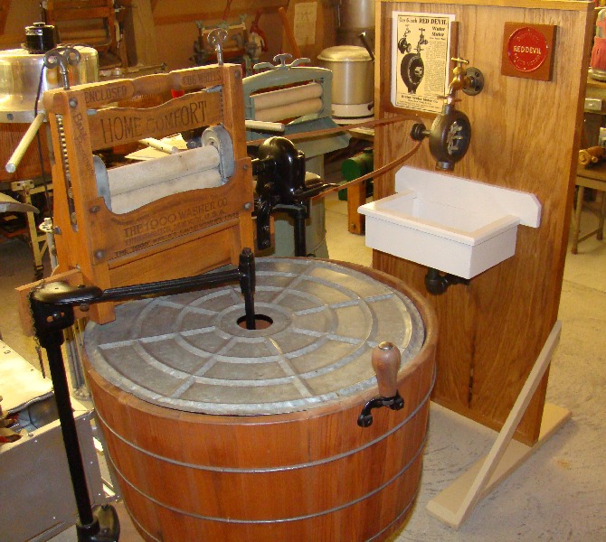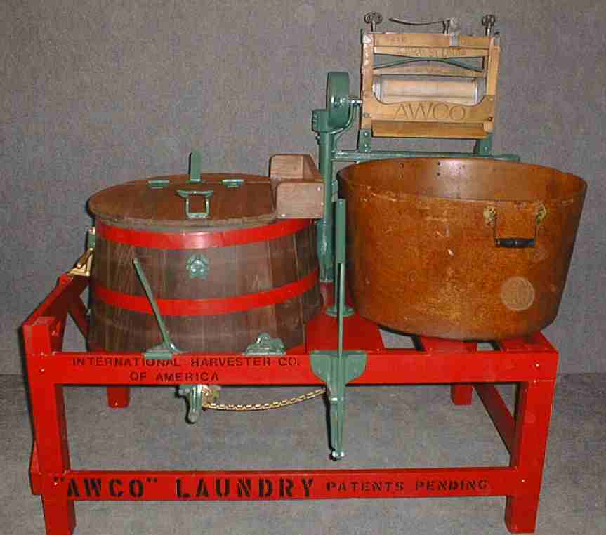 | Description: | Scrubber, flat (disk) agitator held fixed as wooden tub is oscillated, either powered by a water motor, or an electric motor. | |