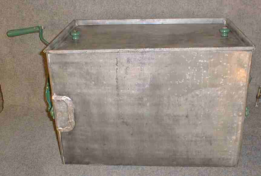 | Description: | Rotating drum, stove top washer, galvanized, hand operated | |