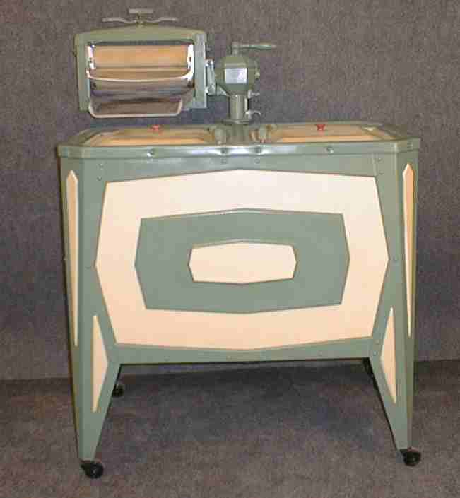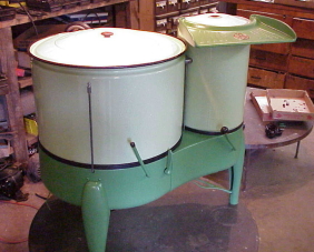 | Description: | Gyrator washer, green porcelain tub, electric motor, attached spin drier | |