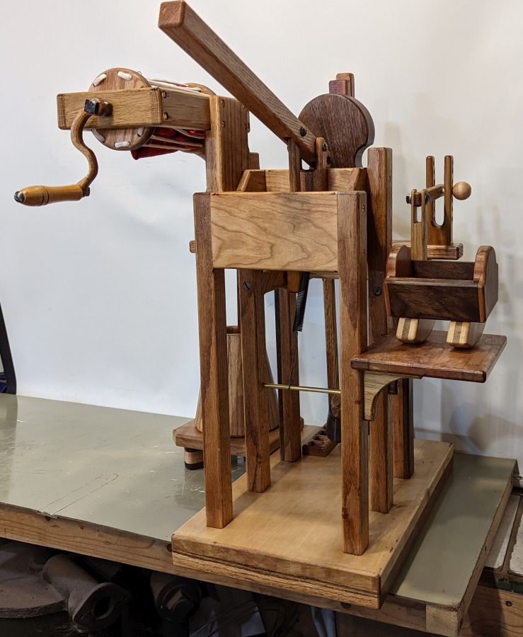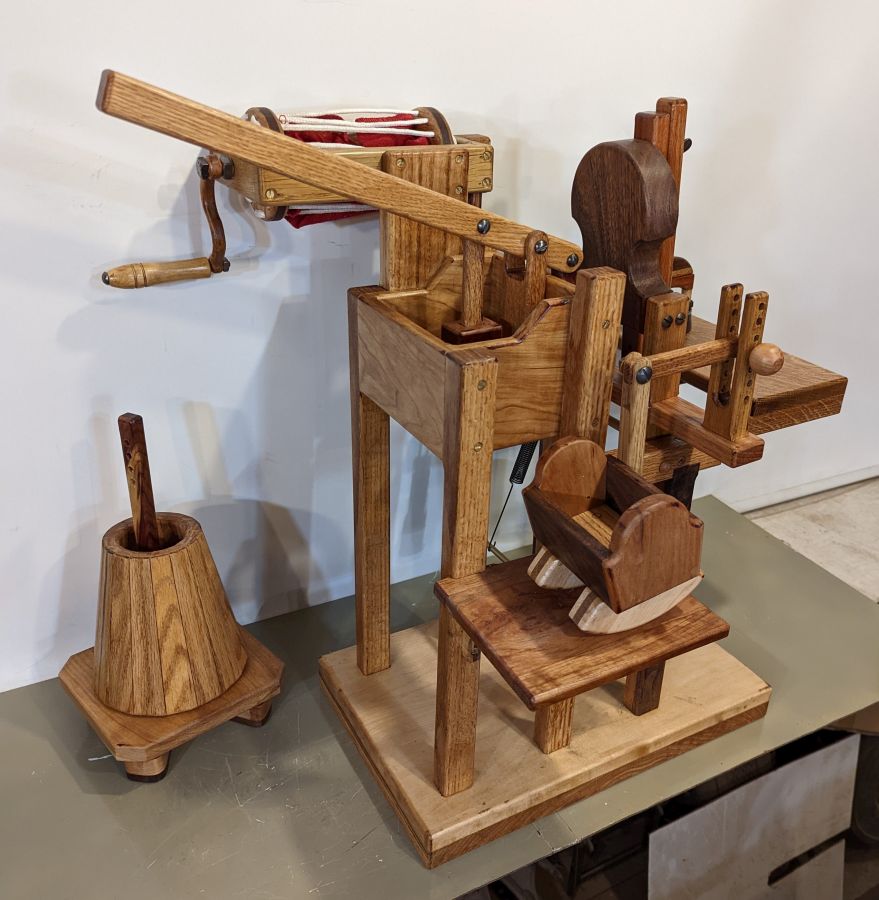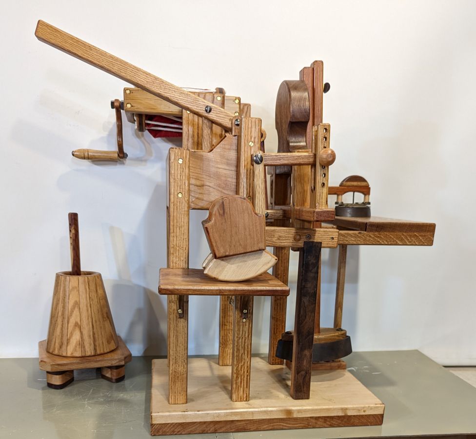 A combination washing machine, butter churn, wringer, cradle rocker, ironer All In One