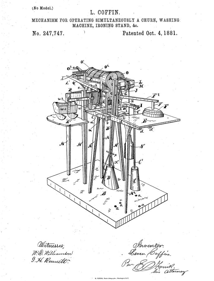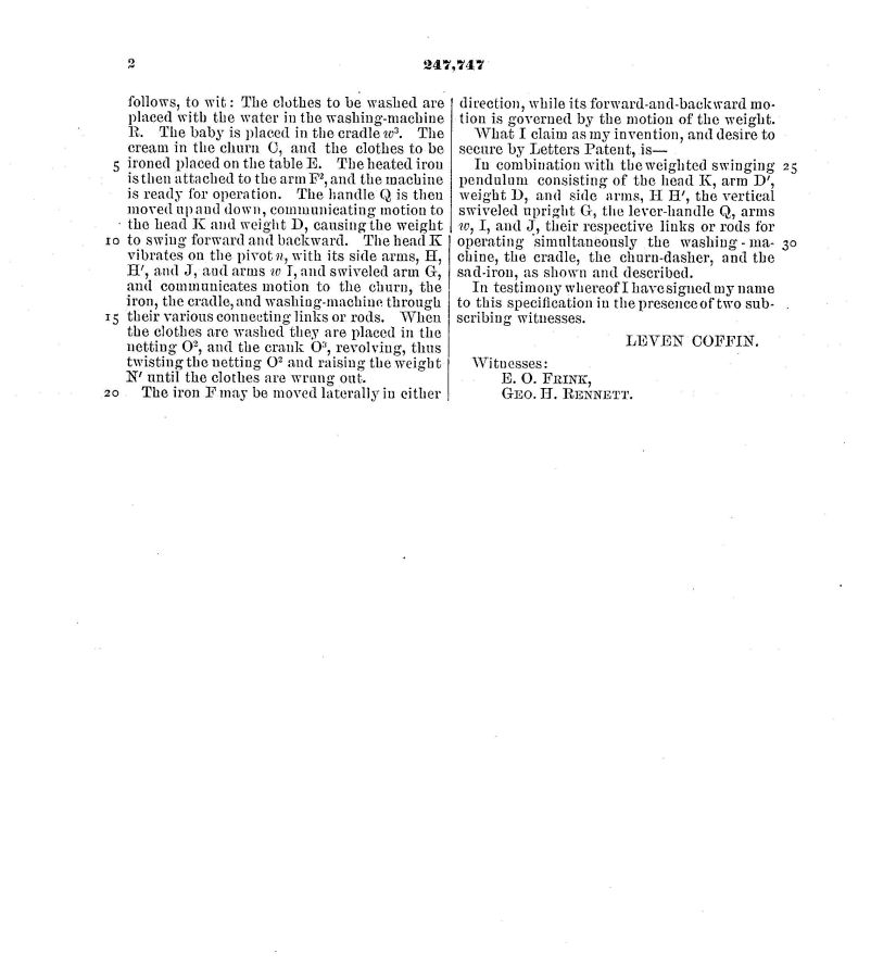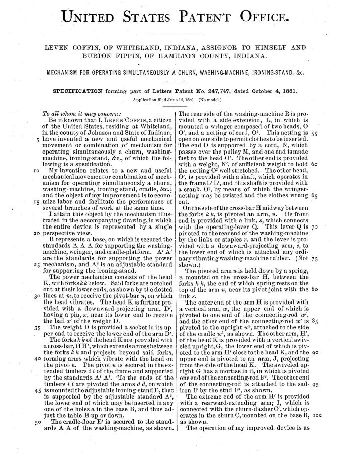 Patent Demo, washing machine, cradle rocker, ironer, butter churn, wringer